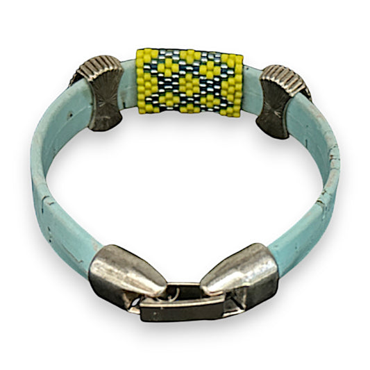 Sky Blue Eco-Friendly Cork Bracelet with Handwoven Peyote Bead Design