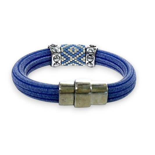 Blue Regaliz Cordoroy Rubber Beaded Bangle with Handwoven Peyote Stitch