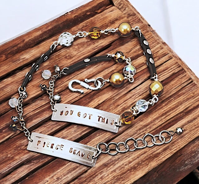 We all need to feel empowered, motivated and encouraged to be our best selves. Words have the power to transform with positive self talk and affirmations. I use crystals, gemstones and hand stamped links and pendants to promote our spiritual well being.