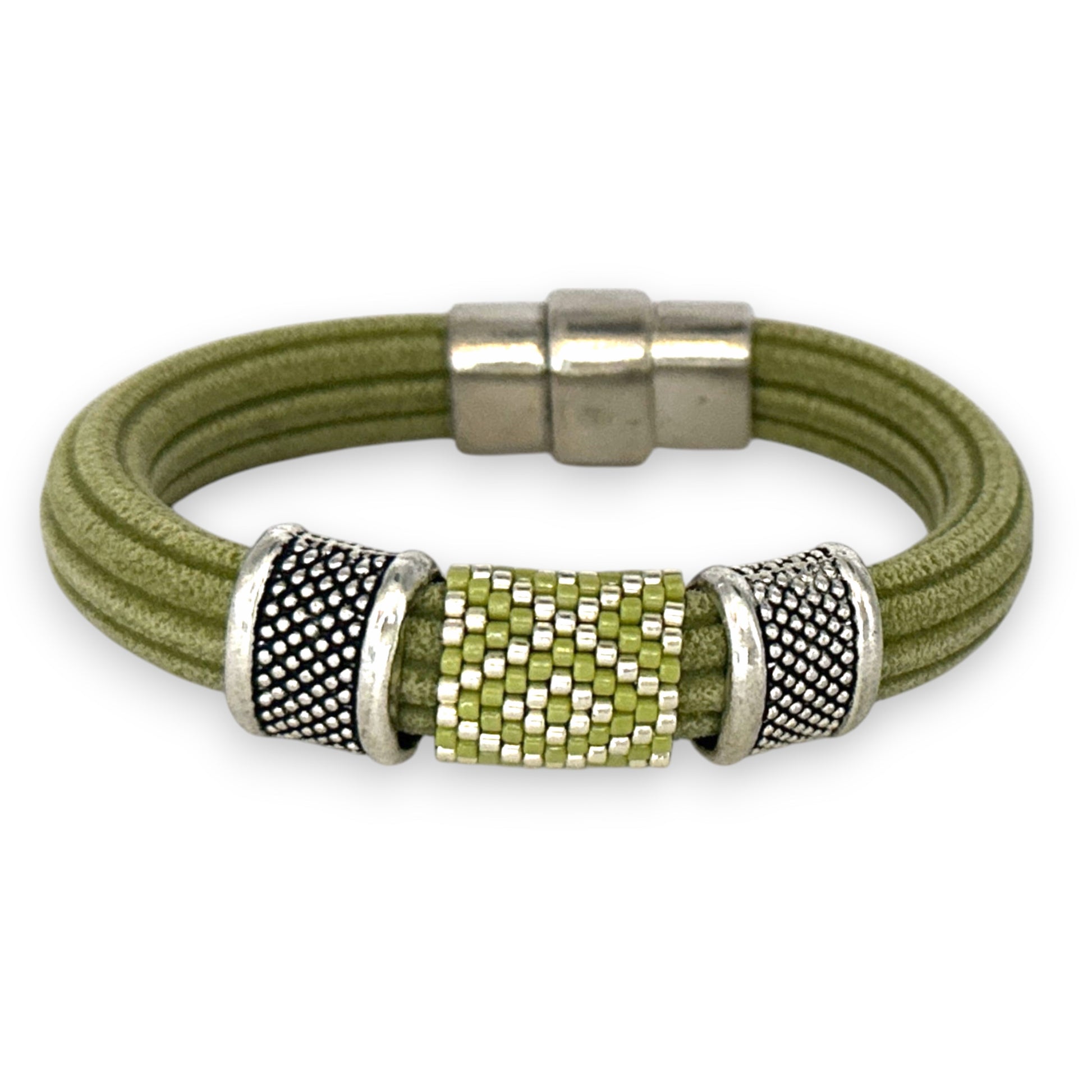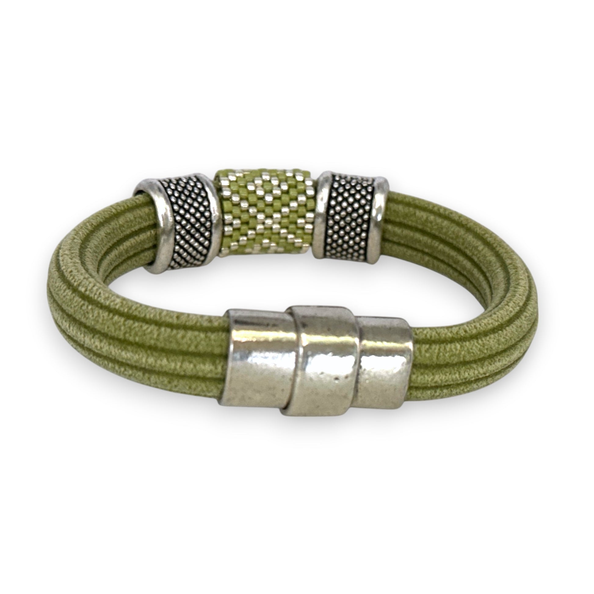Green Regaliz Cordoroy Rubber Beaded Bangle with Handwoven Peyote Stitch
