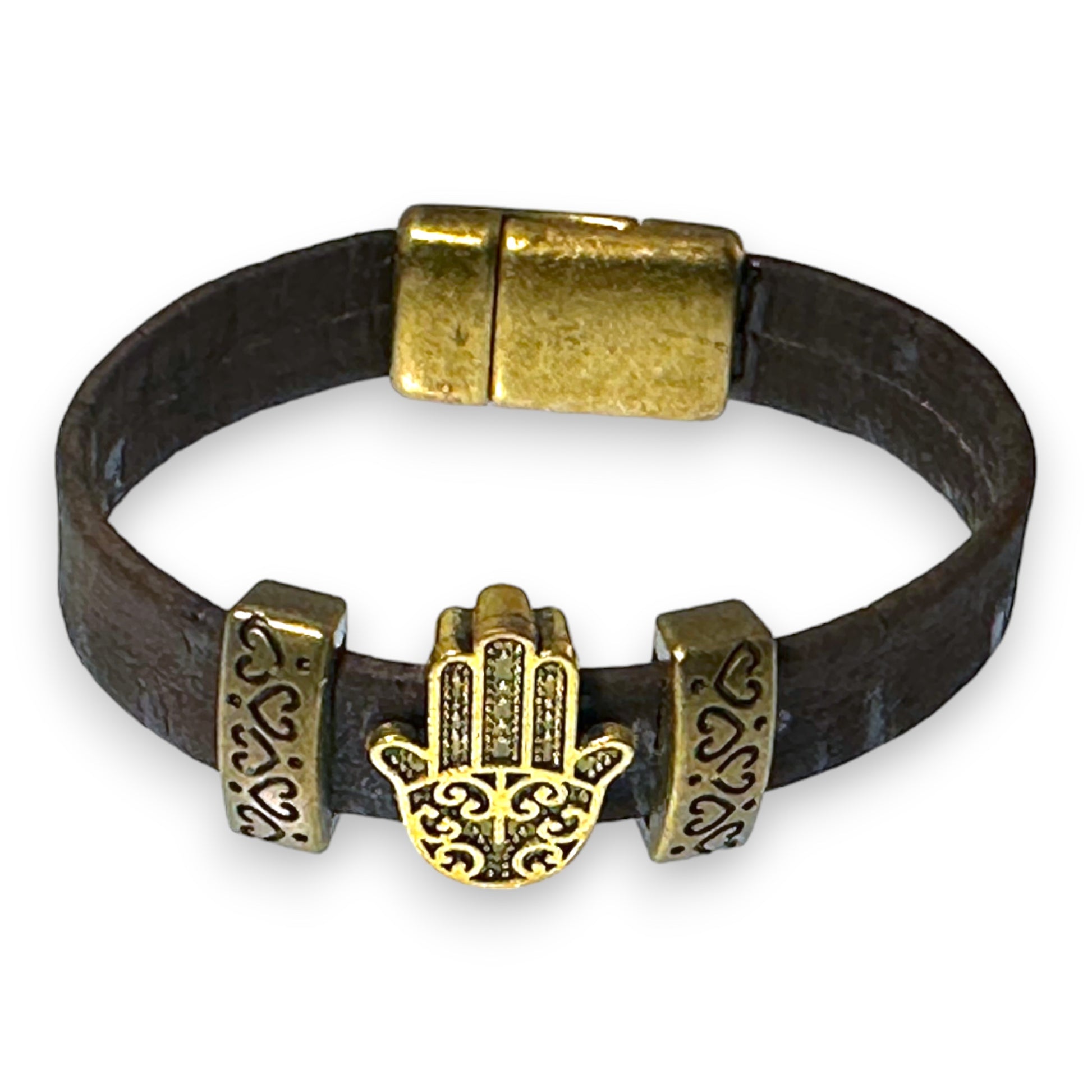 Wrap your wrist in purpose and style. This handcrafted bracelet features soft, sustainable cork in black, paired with beautifully detailed antique brass Hamsa hand sliders — ancient symbols of protection, luck, and good energy. Lightweight and vegan, it’s as kind to the planet as it is to your spirit.