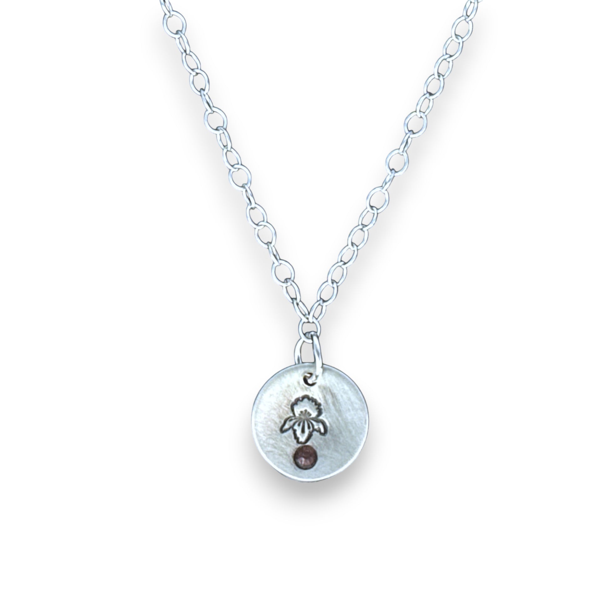 Bloom Your Style: Hand-Stamped Birthstone Flower Necklace with Crystal Detail